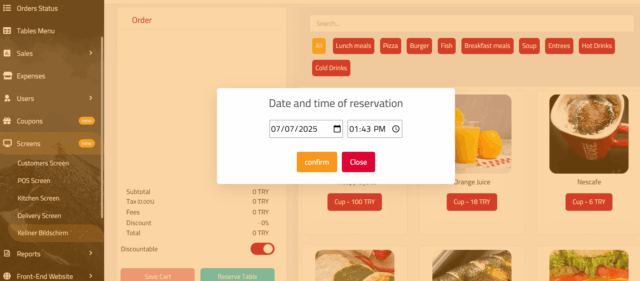 The Waiter Screen in Quality Cashier adds a new dimension of efficiency and professionalism to restaurant operations. With table reservations, direct table-side order creation, and automatic kitchen printing, it significantly improves the customer experience and streamlines communication between the waiter and the kitchen.