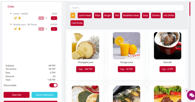 - Once you’ve added the items, click “Save” to confirm the order and link it to the table.
